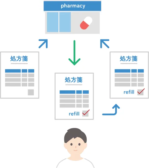 リフィル処方箋制度とは、慢性疾患など症状が安定している患者について、医師が同じ薬で大丈夫と判断した場合に、一定期間内に 同じ処方箋をリフィル(反復)使用できる制度です。